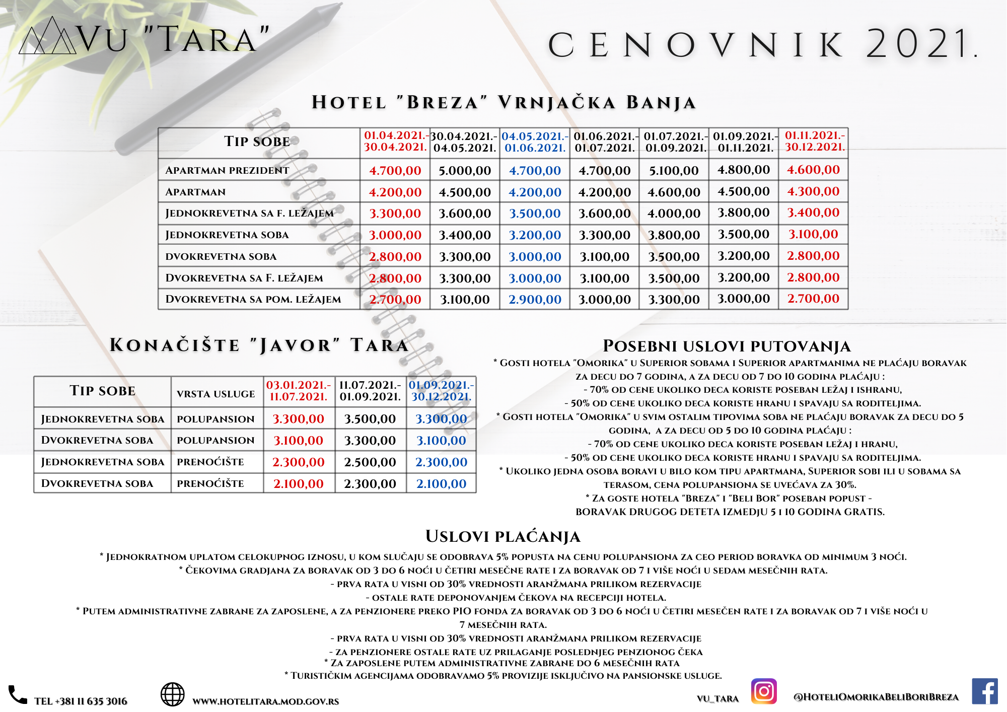 Način plaćanja: avans 30% , ostatak se plaća do kraja boravka u hotelu.